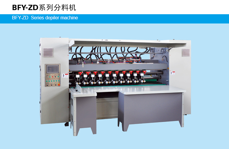 型號 Model BFY2500-ZD BFY3000-ZD 最大分切 Max. Slitting width 2200mm 2700mm 最小分切 Min. Slitting width 140mm 140mm 最小壓線寬度 Min. Scoring width 140mm 140mm 電機功率 Running Power 7.5KW 11KW 訂單儲存 Qty Of Order Storage 9999 機械速度 Max. Speed 200m/min 刀片規(guī)格 Blade φ200×122×1.2(mm) 分切壓線配套型式 Blade & Scoring Composed Type 4刀6線\\\\5刀8線 長寬高 Overall dimension 3500*1250*2000mm (LxWxH) 4200*1250*2000mm (LxWxH)